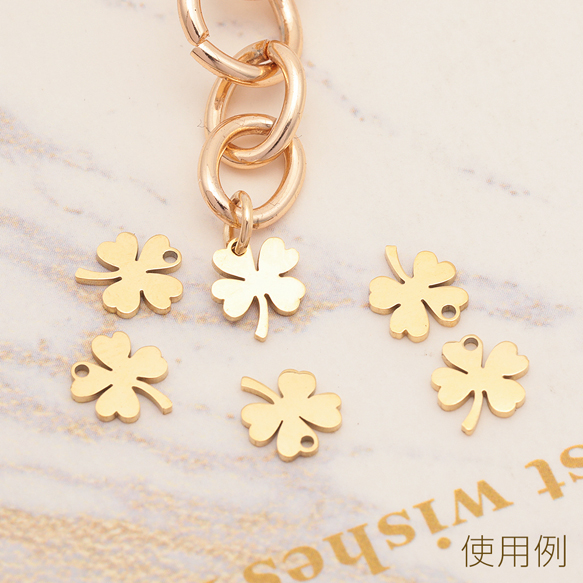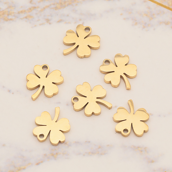 メタルチャーム 四つ葉クローバー クローバーチャーム ラッキーパーツ ステンレス製 カン付き 6×7mm (1 ヶ)