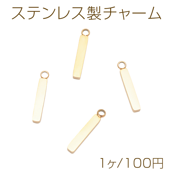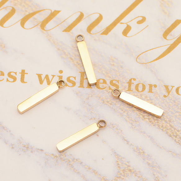メタルチャーム 長方形プレートチャーム 細長プレートパーツ ステンレス製 カン付き 2×12mm (1 ヶ)