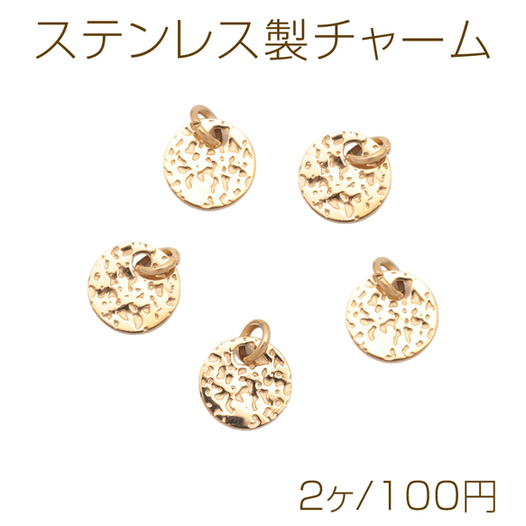 メタルチャーム ハンマード加工 円形パーツ 丸型チャーム ステンレス製 カン付き 直径約 6mm (2 ヶ)