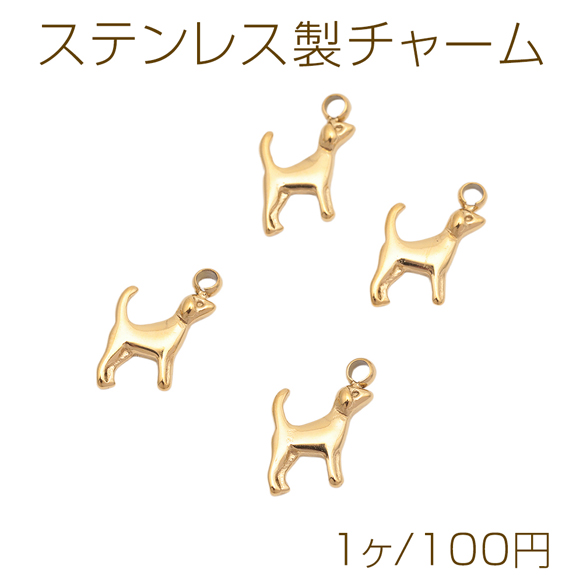 メタルチャーム 犬モチーフ 動物チャーム アニマルパーツ ステンレス製 カン付き 6×10mm (1 ヶ)