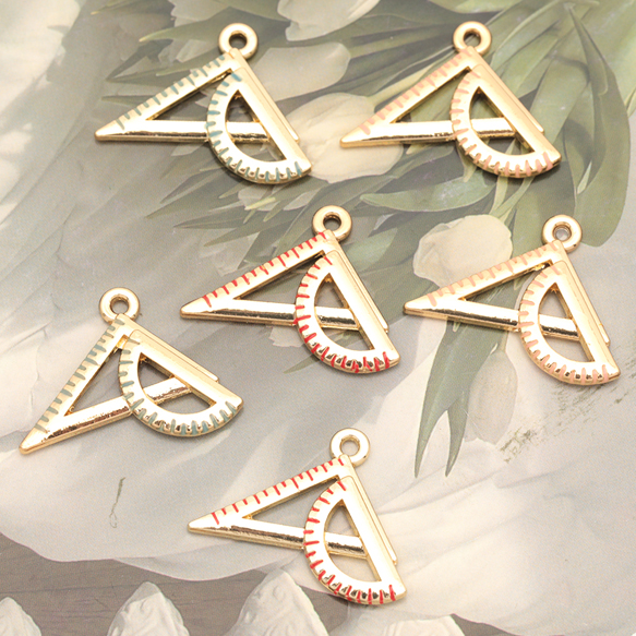 定規チャーム 三角定規 分度器 文房具 ミニチュア エポチャーム メタルチャーム 約20×22mm(4ヶ)