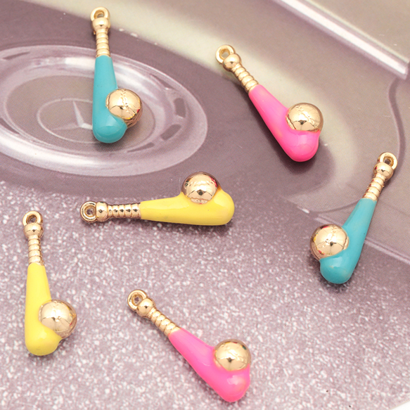 野球チャーム ベースボール バット&ボール ミニチュア スポーツチャーム エポチャーム メタルチャーム 約8×22mm(4ヶ)