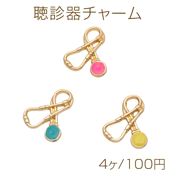 聴診器チャーム 医療器具 医者 ドクター ナース ミニチュア エポチャーム メタルチャーム 約17×20mm(4ヶ)