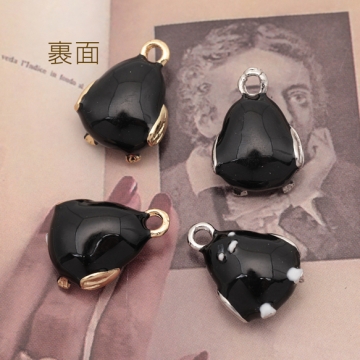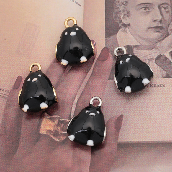 鳥チャーム 鳥モチーフ ブラック シマエナガ 生き物チャーム エポチャーム メタルチャーム 約11×14mm(4ヶ)