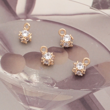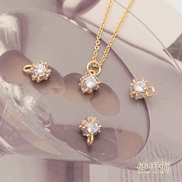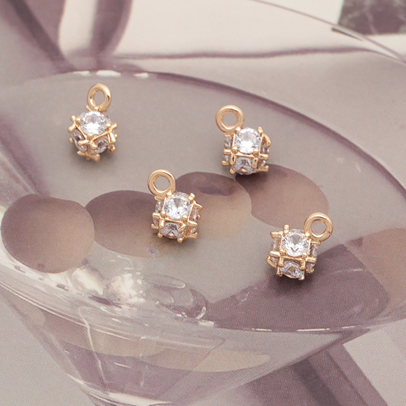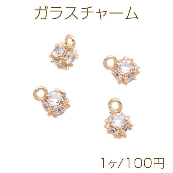 メタルチャーム 立体 キューブ ストーン付き キラキラ 約5×9mm(1ヶ)