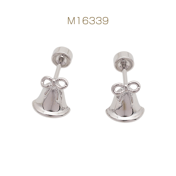 バーベルピアス リボンとベル 半面 鈴 鐘 ステンレス製 メッキ加工 デザインピアス 約7×8mm( 1ペア)