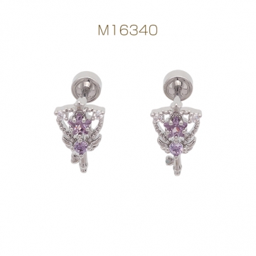 バーベルピアス 魔法のステッキ 杖 ステンレス製 メッキ加工 デザインピアス 約7×11mm( 1ペア)