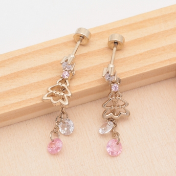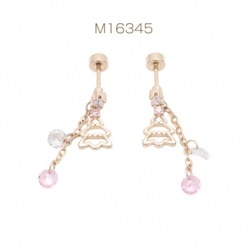 バーベルピアス クリスマスツリー ストーンチャーム付き ステンレス製 メッキ加工 デザインピアス 約7×9mm( 1ペア)