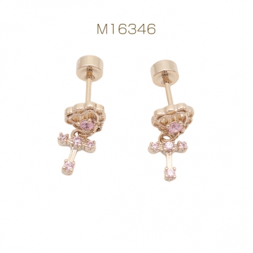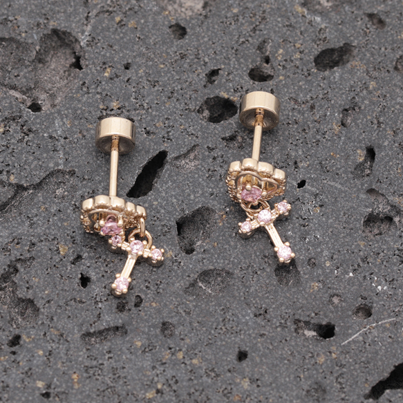 バーベルピアス ハート&クロス 十字架 ステンレス製 メッキ加工 デザインピアス 約6×7mm( 1ペア)