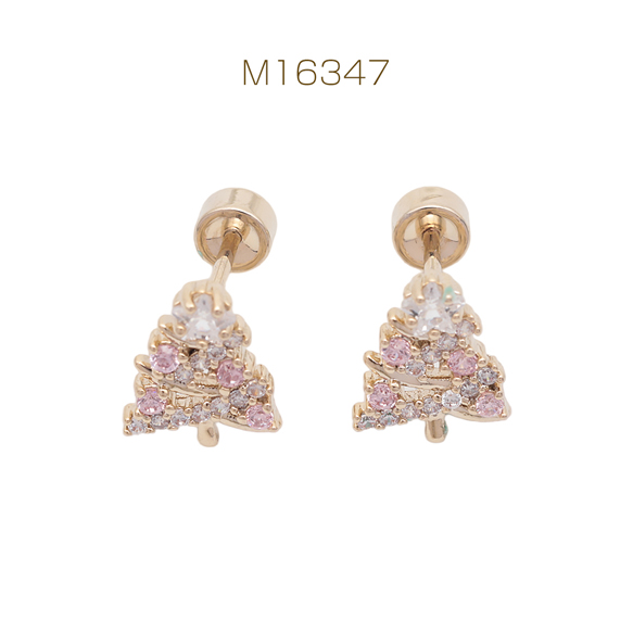 バーベルピアス クリスマスツリー ラインストーン ステンレス製 メッキ加工 デザインピアス 約8×10mm(1ペア)