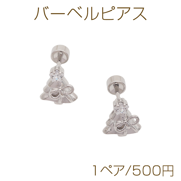 卸売バーベルピアス クリスマスツリー ストーン付き ステンレス製 メッキ加工 デザインピアス 約8×10mm( 1ペア)