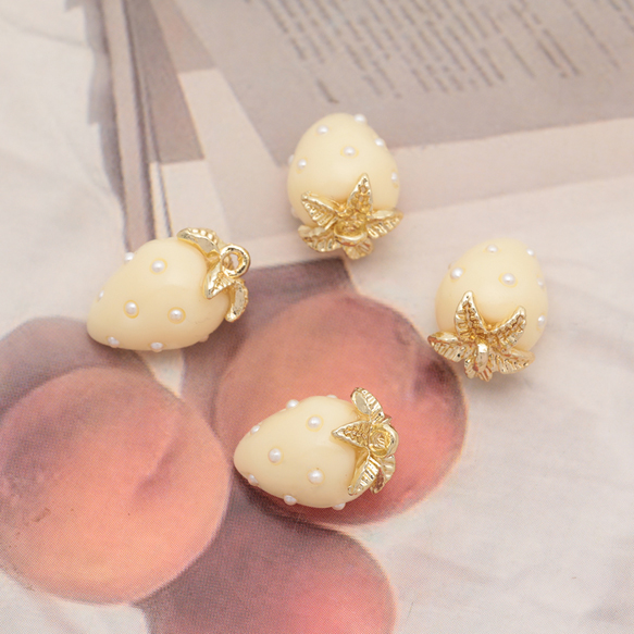 いちごチャーム パール付き かじり苺 かじった苺 食べかけ イチゴ カン付き アイボリー 樹脂チャーム 約9×13mm(4ヶ)