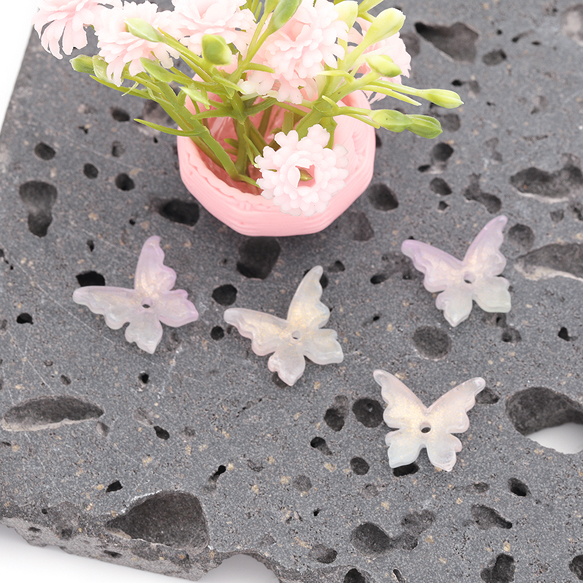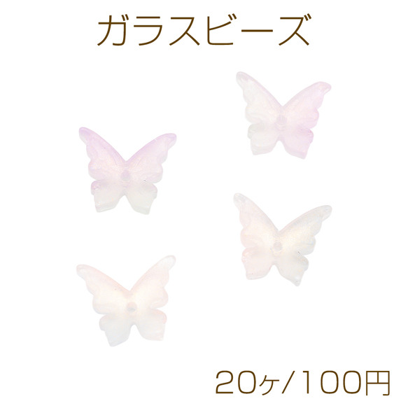 ガラスビーズ 蝶々 バタフライ ビーズキャップ 花座 中心穴あき 蝶チャーム 約12×13mm(20ヶ)