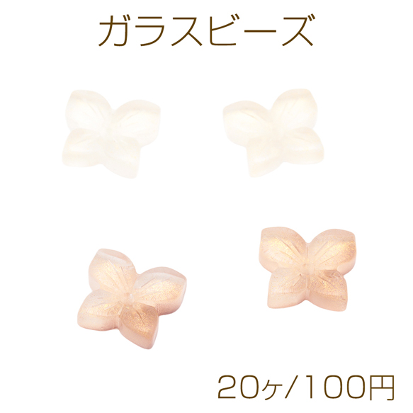 ガラスビーズ フラワー お花 四弁花 ビーズキャップ 花座 中心穴あき フラワーチャーム 約11×12mm(20ヶ)