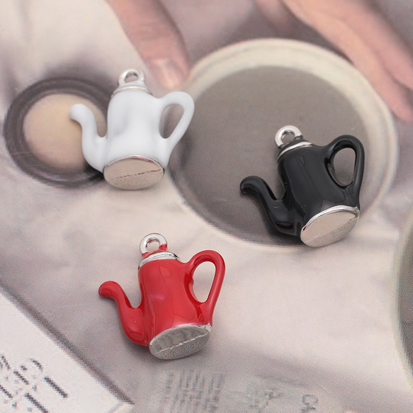 エポチャーム シルバー ポット ケトル ティータイム カフェ 食器 ミニチュア 立体 メタルチャーム 約16×16mm(1ヶ)