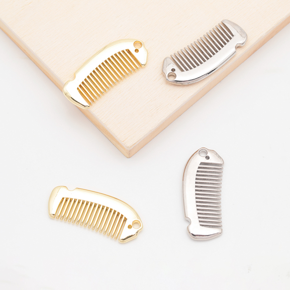 くしチャーム 櫛 コーム ブラシ ファッションチャーム チャームパーツ メタルチャーム 約12×30mm(4ヶ)