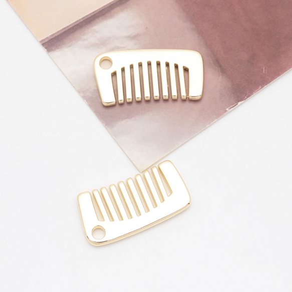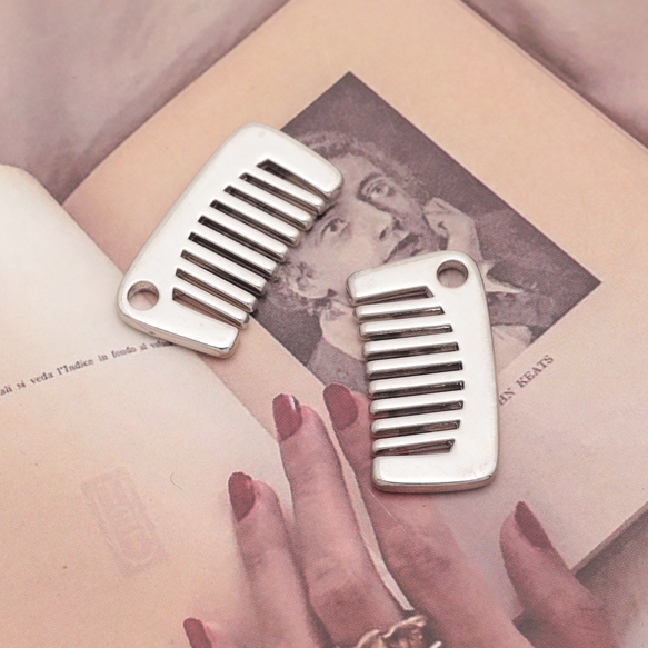 くしチャーム 櫛 コーム ブラシ ファッションチャーム チャームパーツ メタルチャーム 約12×22mm(4ヶ)