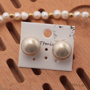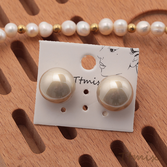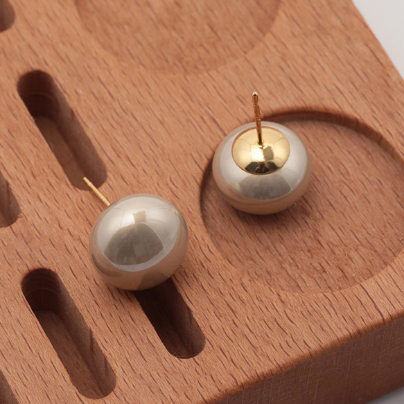 デザインピアス ABSパール シャンパンカラー エレガント メタルピアス スタッドピアス 約14mm(1ペア)