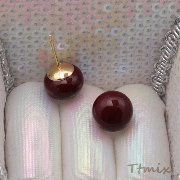 デザインピアス キャンディ 飴玉 丸玉 ワインレッド メタルピアス スタッドピアス 約12mm(1ペア)