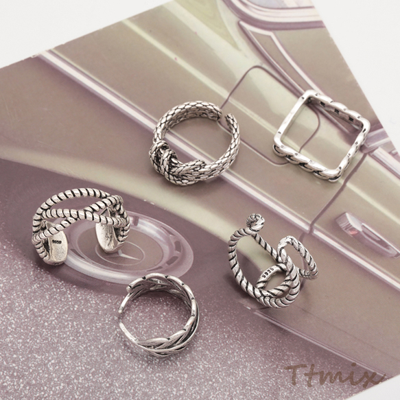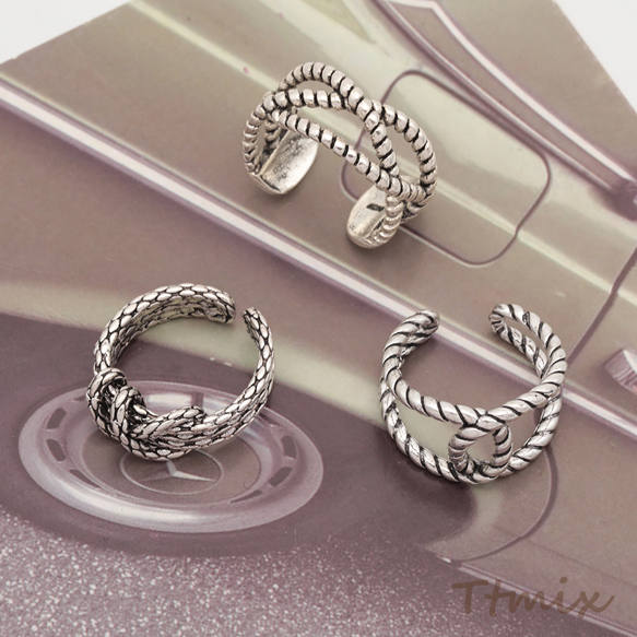 デザインリング ツイスト ヴィンテージ風 アンティークシルバー メタルリング オープンリング 全5種(1個)