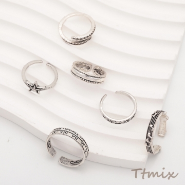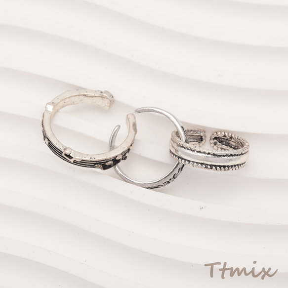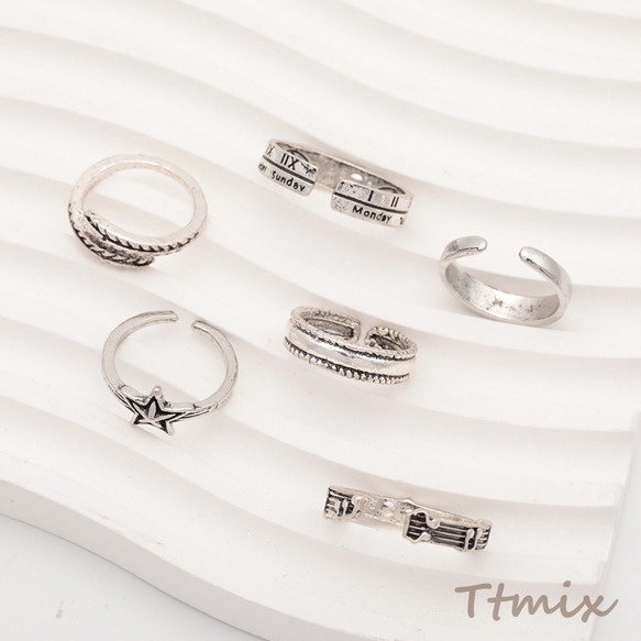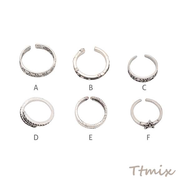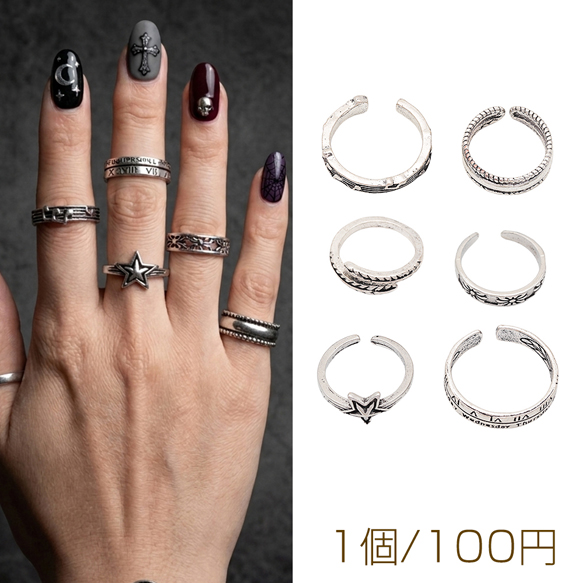デザインリング 細身 バリエーション豊富 ヴィンテージ風 アンティークシルバー メタルリング オープンリング 全6種(1個)