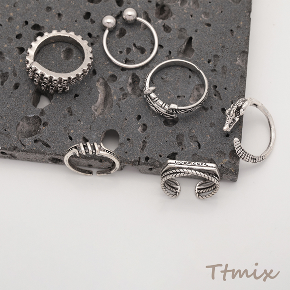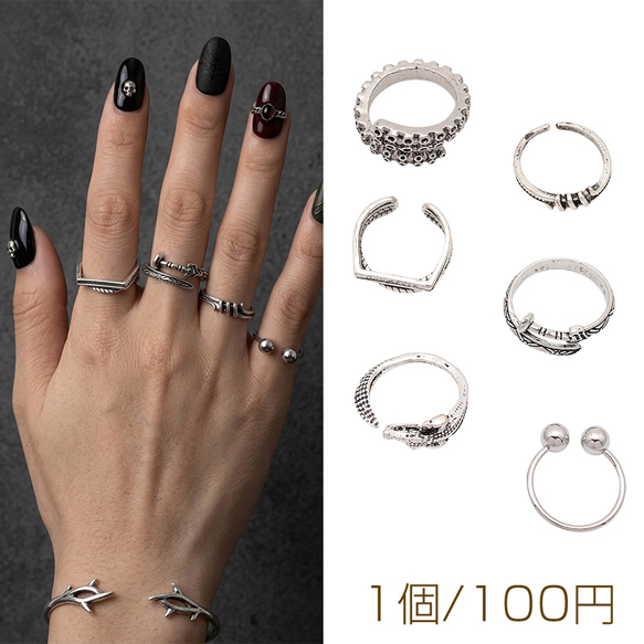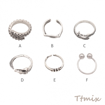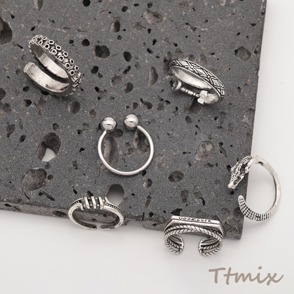 デザインリング 変形 バリエーション豊富 ヴィンテージ風 アンティークシルバー メタルリング オープンリング 全6種(1個)