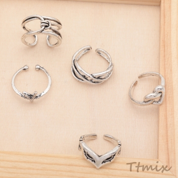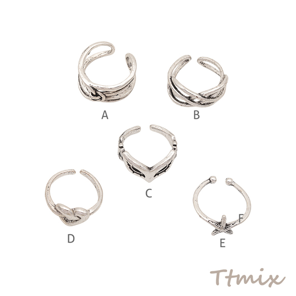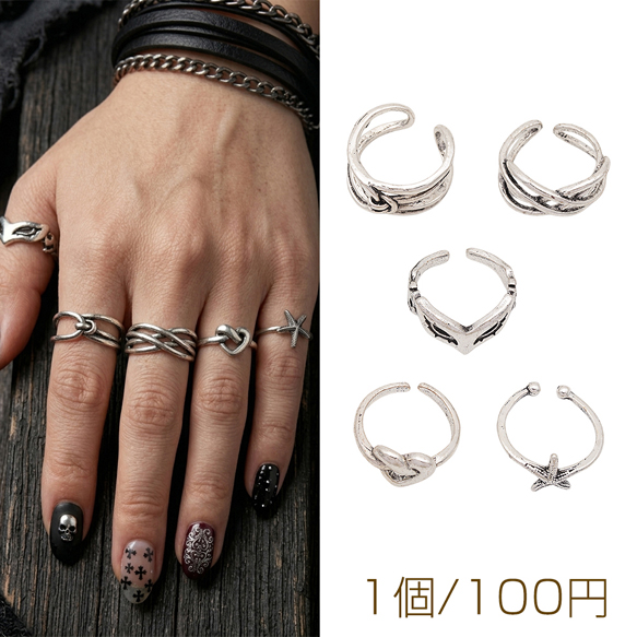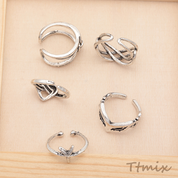 デザインリング スマート 変形デザイン ヴィンテージ風 アンティークシルバー メタルリング オープンリング 全5種(1個)