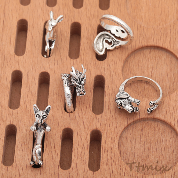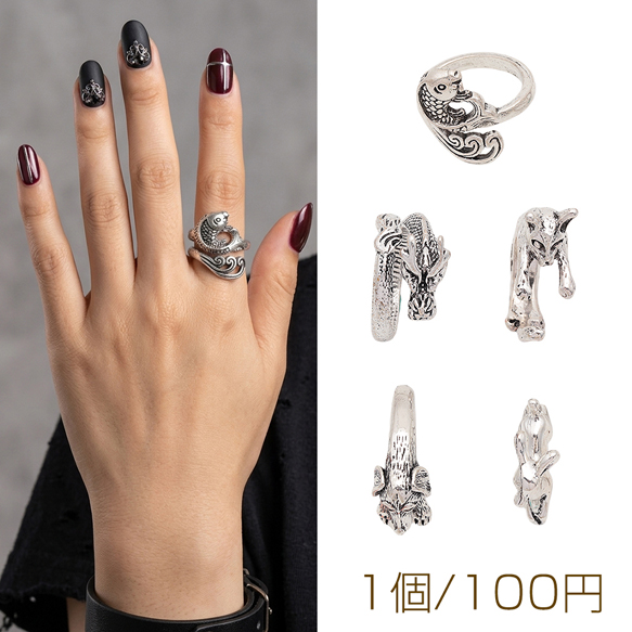 デザインリング ユニーク アニマルデザイン ヴィンテージ風 アンティークシルバー メタルリング オープンリング 全5種(1個)