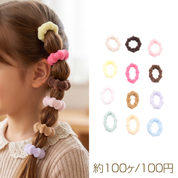 ヘアゴム お徳用 フラワーモチーフ ミックスカラー カラーランダム 髪飾り 髪留め ヘアゴム ヘアアクセサリー(約100ヶ)