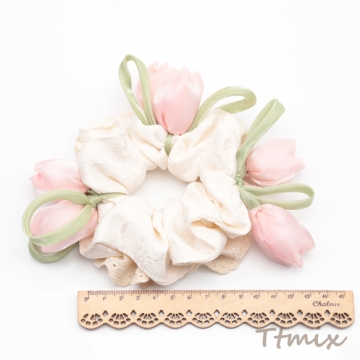シュシュ チューリップ フラワーモチーフ フラワーレース 髪飾り 髪留め ヘアゴム ヘアアクセサリー(1ヶ)