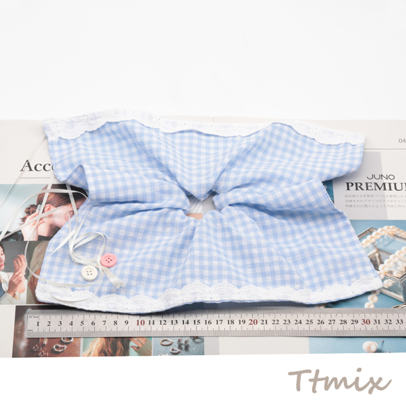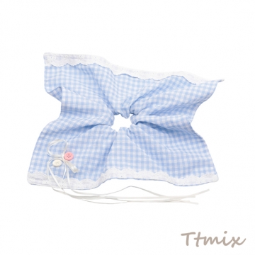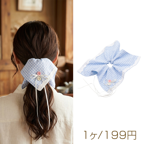 シュシュ ブルー カントリー風 スカーフリボン チェック模様 髪飾り 髪留め ヘアゴム ヘアアクセサリー(1ヶ)