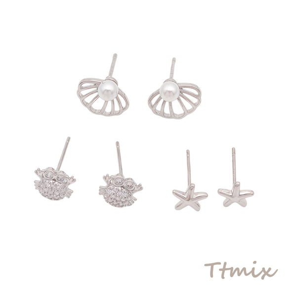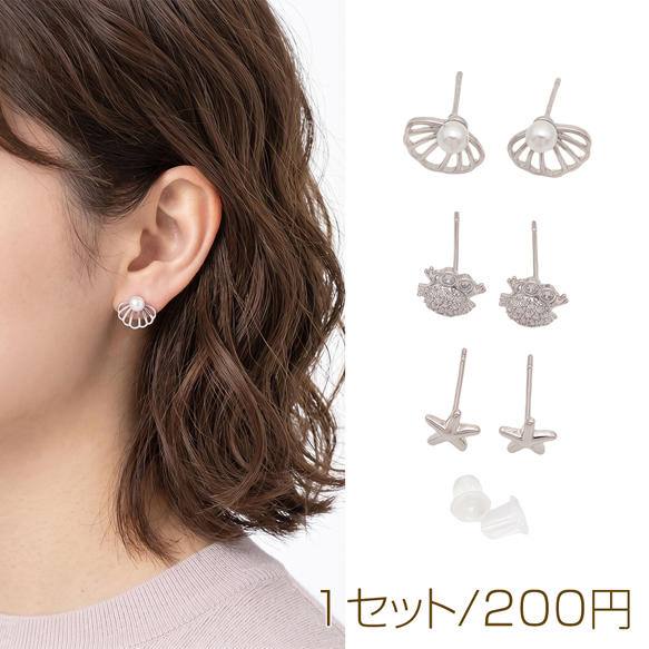 デザインピアス 貝 ヒトデ 海 夏 スタッドピアス 3種(1セット)
