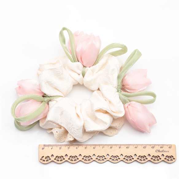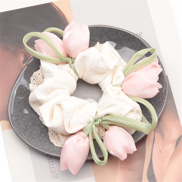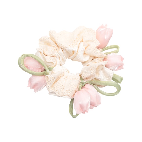卸売シュシュ チューリップ フラワーモチーフ フラワーレース 髪飾り 髪留め ヘアゴム ヘアアクセサリー(1ヶ)