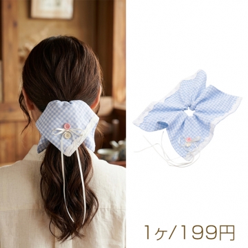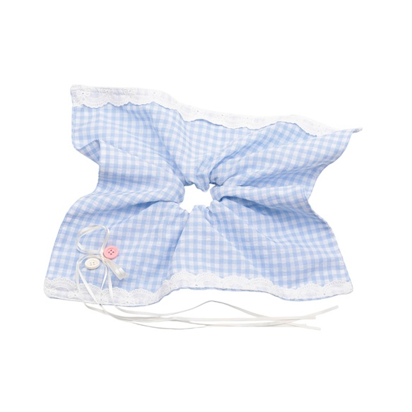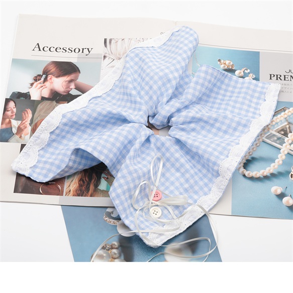 卸売シュシュ ブルー カントリー風 スカーフリボン チェック模様 髪飾り 髪留め ヘアゴム ヘアアクセサリー(1ヶ)