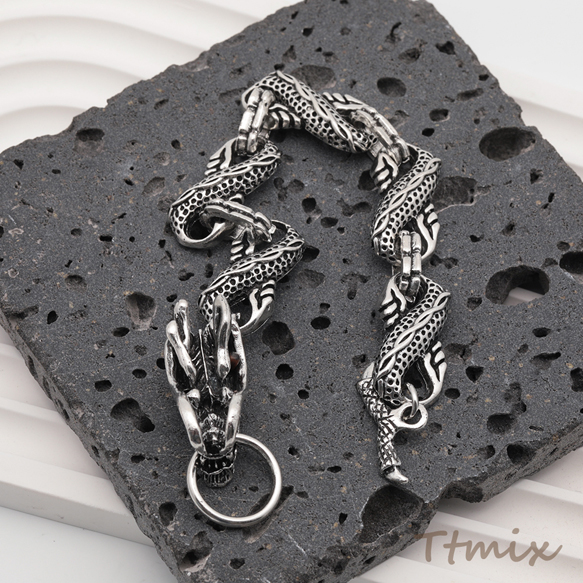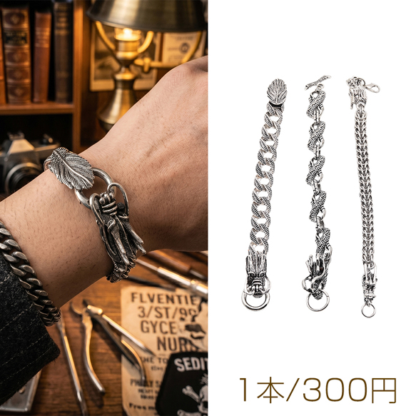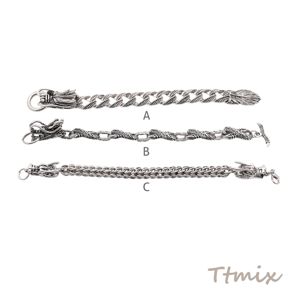ブレスレット ヴィンテージ風 ドラゴン 龍 ワイルド アンティーク調 メタルチェーンブレスレット 3種(1本)