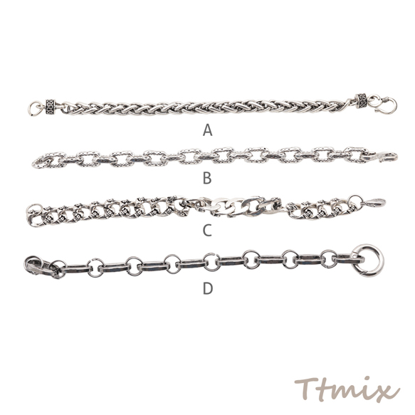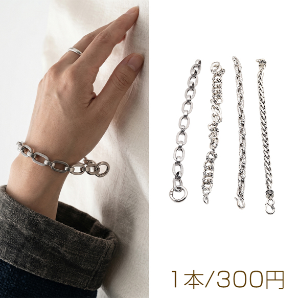 ブレスレット ヴィンテージ風 ワイルド 個性的 アンティーク調 メタルチェーンブレスレット 4種(1本)