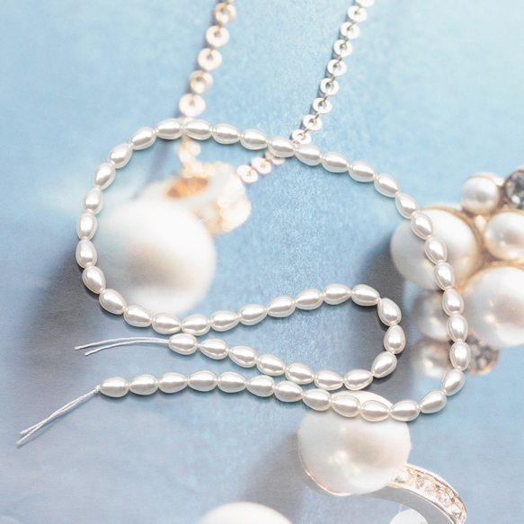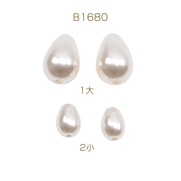 ガラスパール アイボリー しずく型 縦穴 染色 カラービーズ パール調ガラスビーズ 2種(6ヶ)