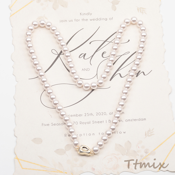 パールネックレス 高品質フェイクパール 丸玉 ガラスパール シンプル 長さ約44cm 6mm(1本)