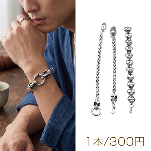 卸売ブレスレット ヴィンテージ風 骸骨モチーフ スカル アンティーク調 メタルチェーンブレスレット 3種(1本)