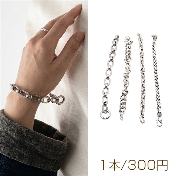 卸売ブレスレット ヴィンテージ風 ワイルド 個性的 アンティーク調 メタルチェーンブレスレット 4種(1本)
