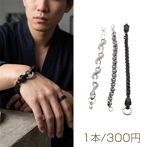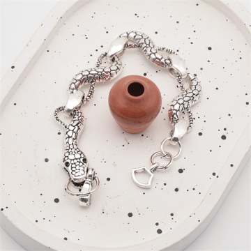卸売ブレスレット ヴィンテージ風 ヘビ ドクロ アンティーク調 メタルチェーンブレスレット 3種(1本)