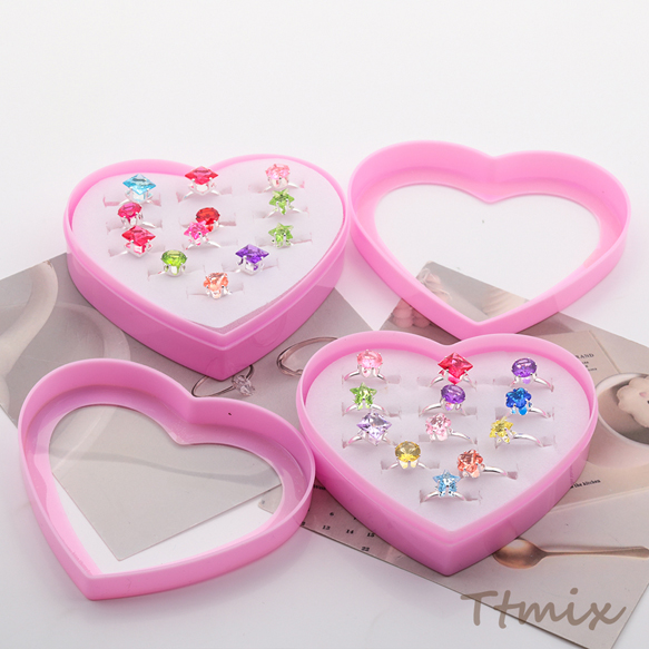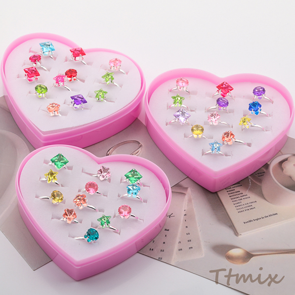 キッズ用リング ランダム キラキラ 宝石 子ども用 おもちゃの指輪 オープンリング 外径約16mm内径約14mm(1ケース)