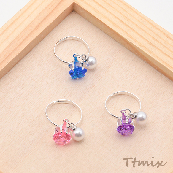 キッズ用リング ランダム パール付き 子ども用 おもちゃの指輪 オープンリング 外径約16mm内径約14mm(1ケース)