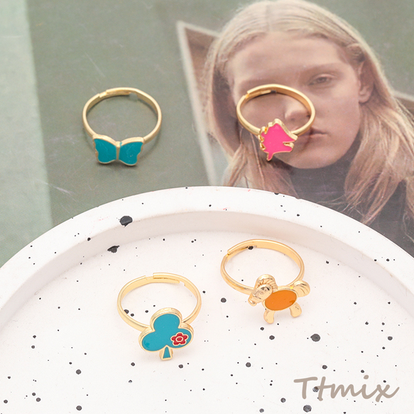 キッズ用リング ランダム エポチャーム 子ども用 おもちゃの指輪 オープンリング 外径約17mm内径約15mm(1ケース)