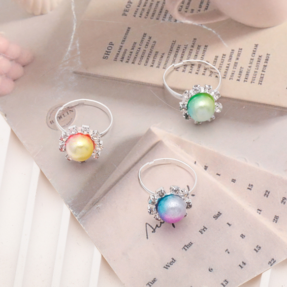 卸売キッズ用リング ランダム パール風 子ども用 おもちゃの指輪 オープンリング 外径約17mm内径約15mm(1ケース)