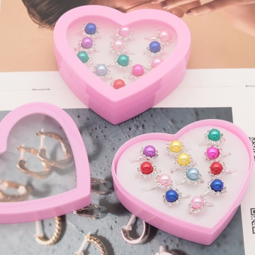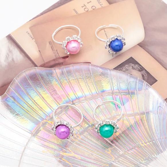 卸売キッズ用リング ランダム カラーパール風 子ども用 おもちゃの指輪 オープンリング 外径約17mm内径約15mm(1ケース)