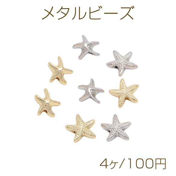 メタルビーズ ヒトデモチーフ 星形 海洋生物 メタルパーツ 全4種(4ヶ)