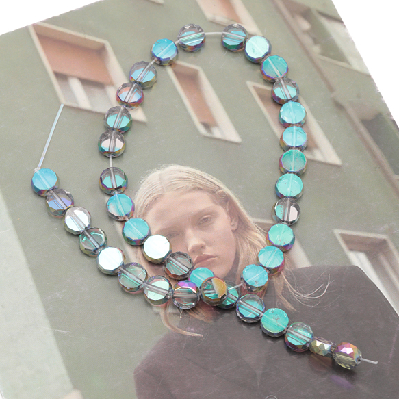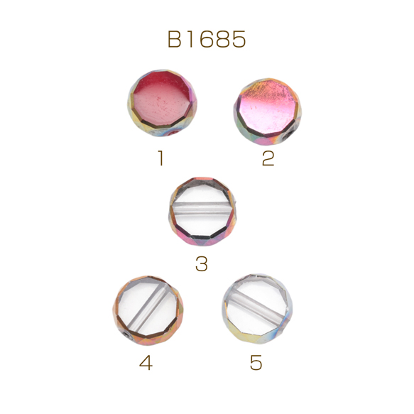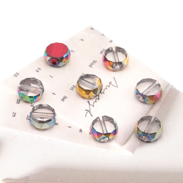 ガラスビーズ コイン型 レガラスビーズ コイン型 レッド/クリア オーロラメッキの縁 多面カット 研磨加工 フラットビーズ 約10mm(4ヶ)