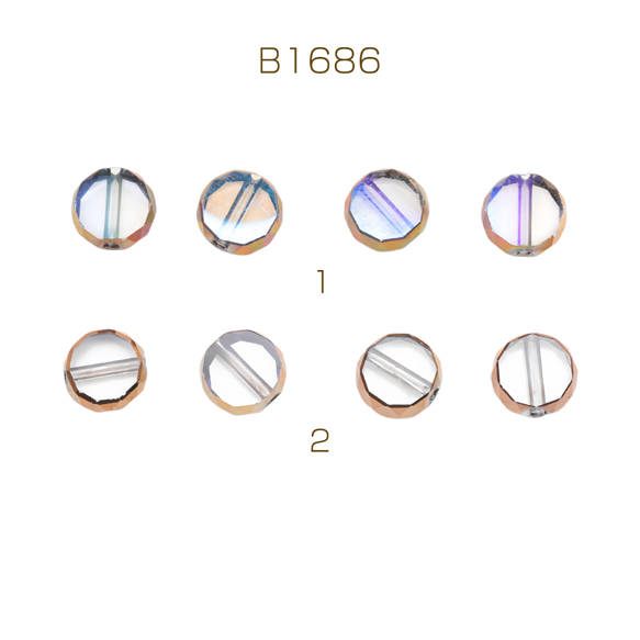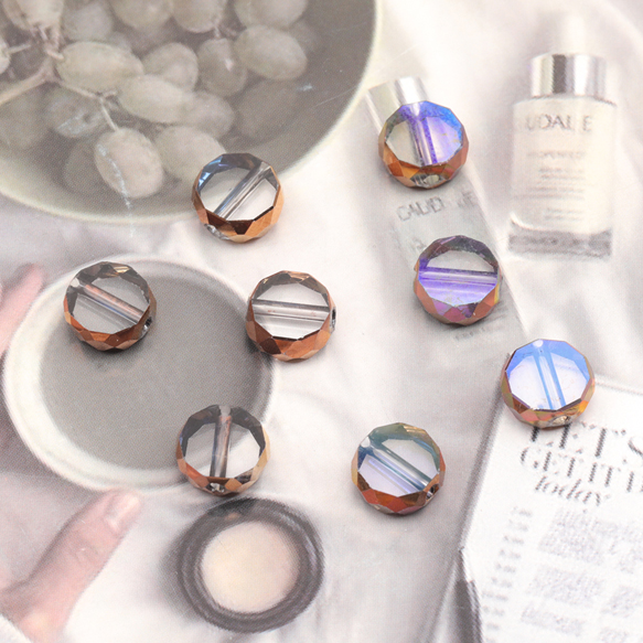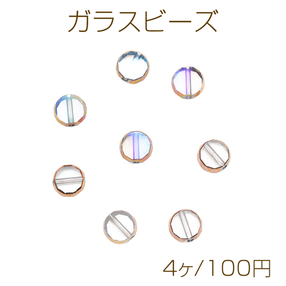 ガラスビーズ コイン型 クリア アンティークブロンズメッキの縁 多面カット 研磨加工 フラットビーズ 約10mm(4ヶ)