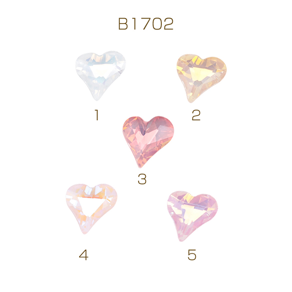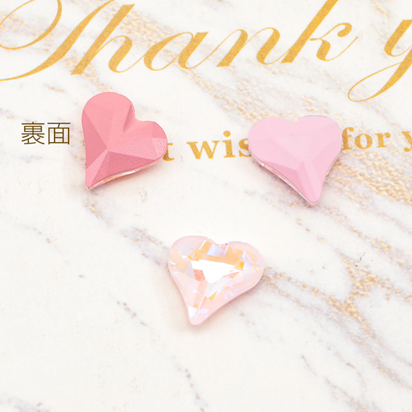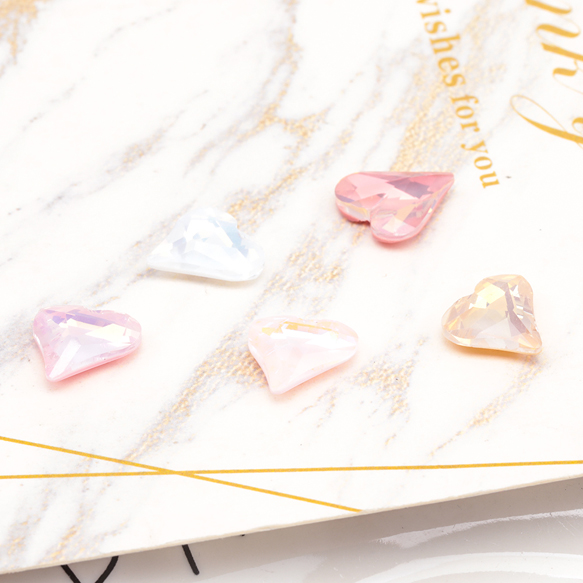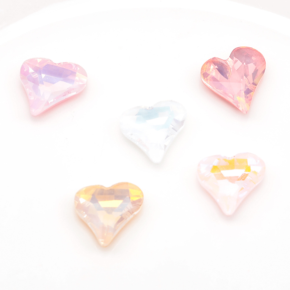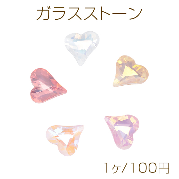 ガラスストーン ハート キラキラ 穴なし 立体 Vカット ビジュー 貼り付け ガラスパーツ 約12×13mm(1ヶ)